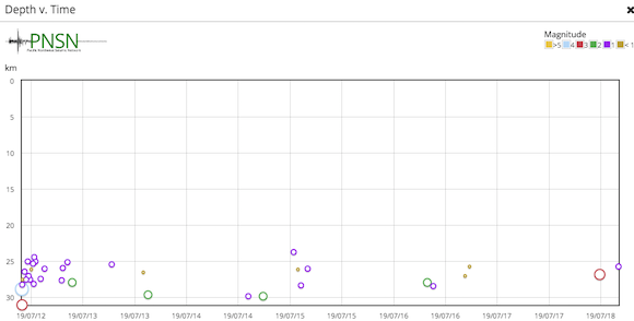 In Washington there have been only 2 other earthquakes of larger than this one in the past 10 years: A deep intraslab M4.9 near Poulsbo in the Puget Lowlands in 2009 and an M4.7 near Okanagan in Northeast Washington State in 2011.